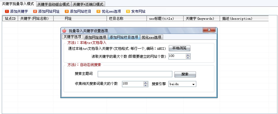 6.增加批量关键字导入建站功能